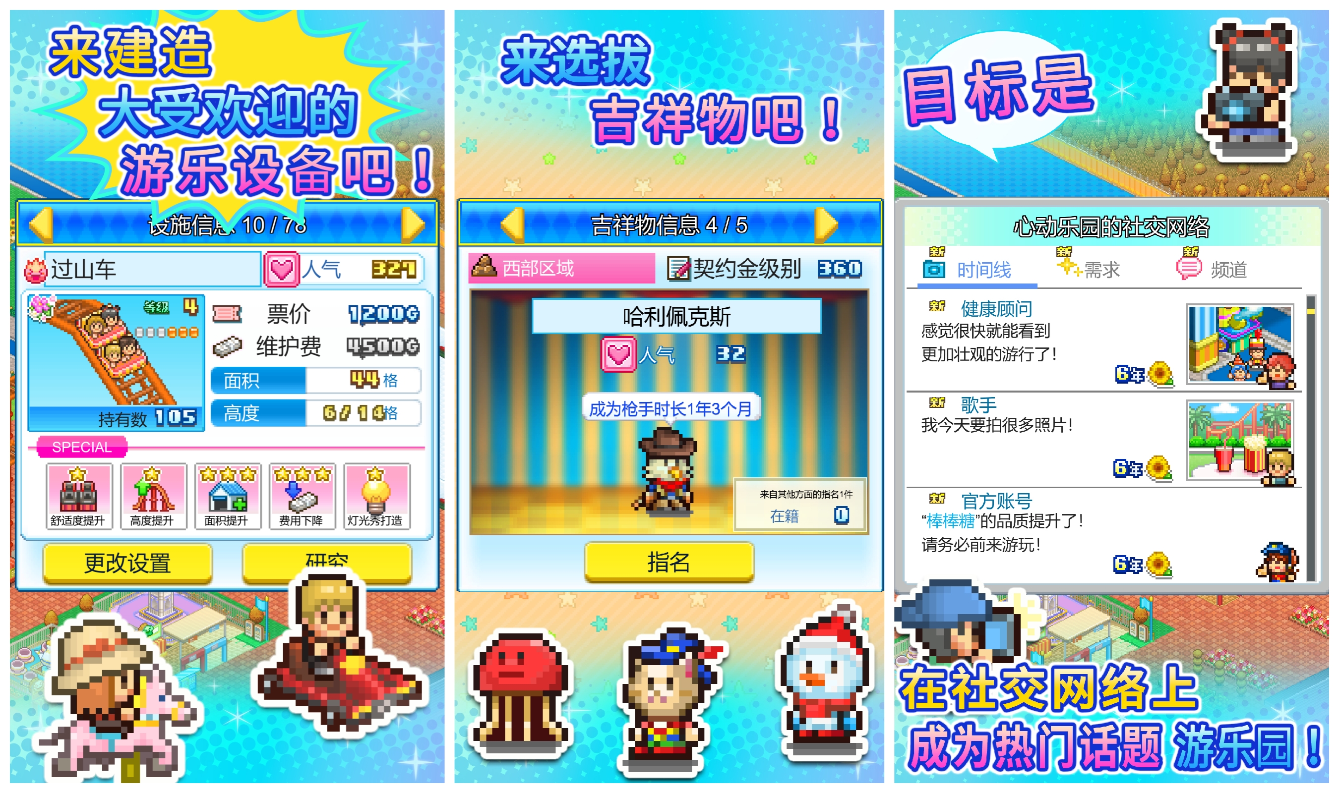 《游乐园梦物语》是一款以游乐园为题材的模拟经营游戏!你将扮演游乐园的园长,打造一座充满笑容与回忆的美妙游乐园!发挥奇妙创意,解锁多种特色主题街区,还可以举办各种季节主题活动、评选独特魅力的吉祥物,吸引越来越多的游客前来游玩吧!