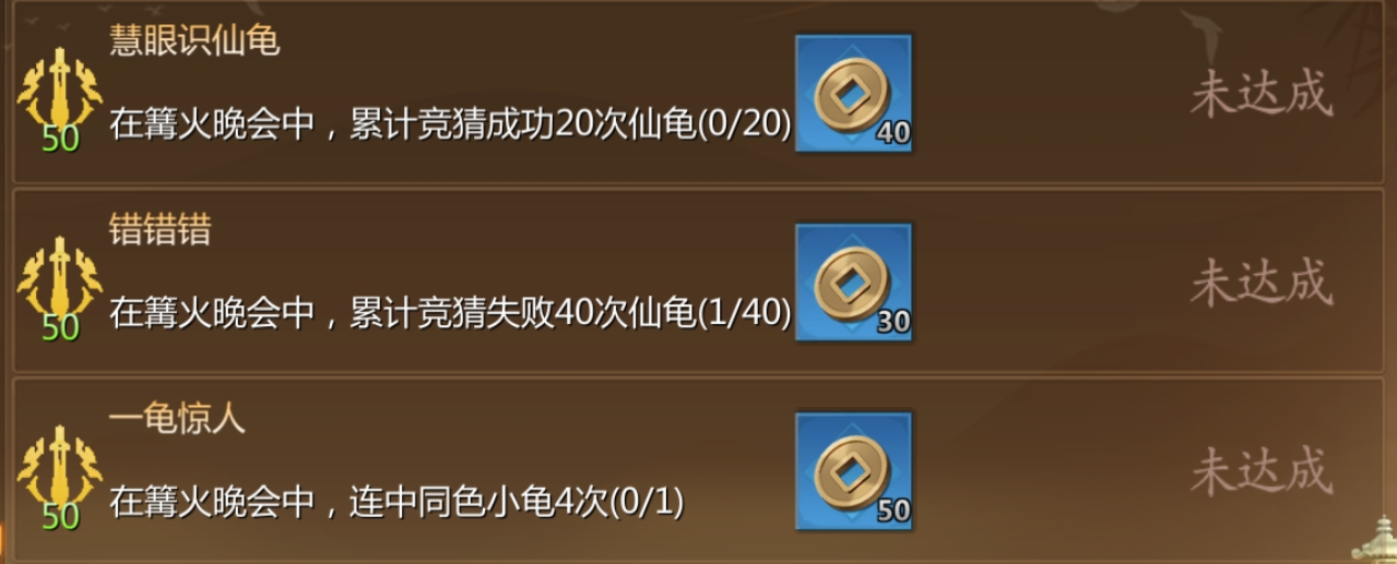 另外还额外增加了3个与小龟赛跑相关的成就,都归类在【境界】-【成就】-【节庆玩乐】的分类下面,蜀友们只要累计竞猜成功或失败一定次数后就可以解锁相关成就,连中同色小龟4次也有相应成就~