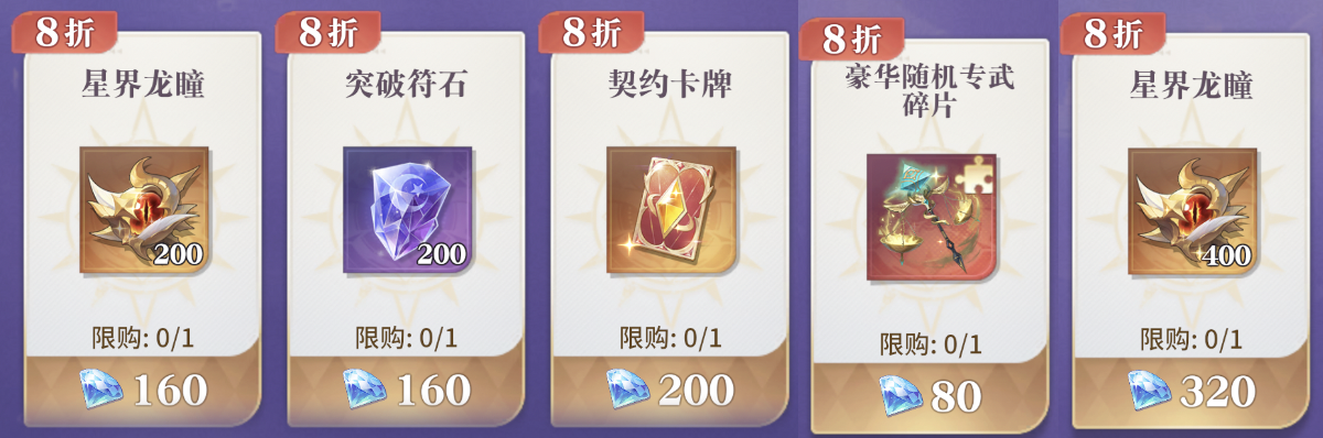 8折10张契约卡牌1980、8折契约金蛋1280钻(前期可以开几下来提升一下)、7折300魔晶强化石210钻(打算冲一下榜可以囤一下,后期会溢出)