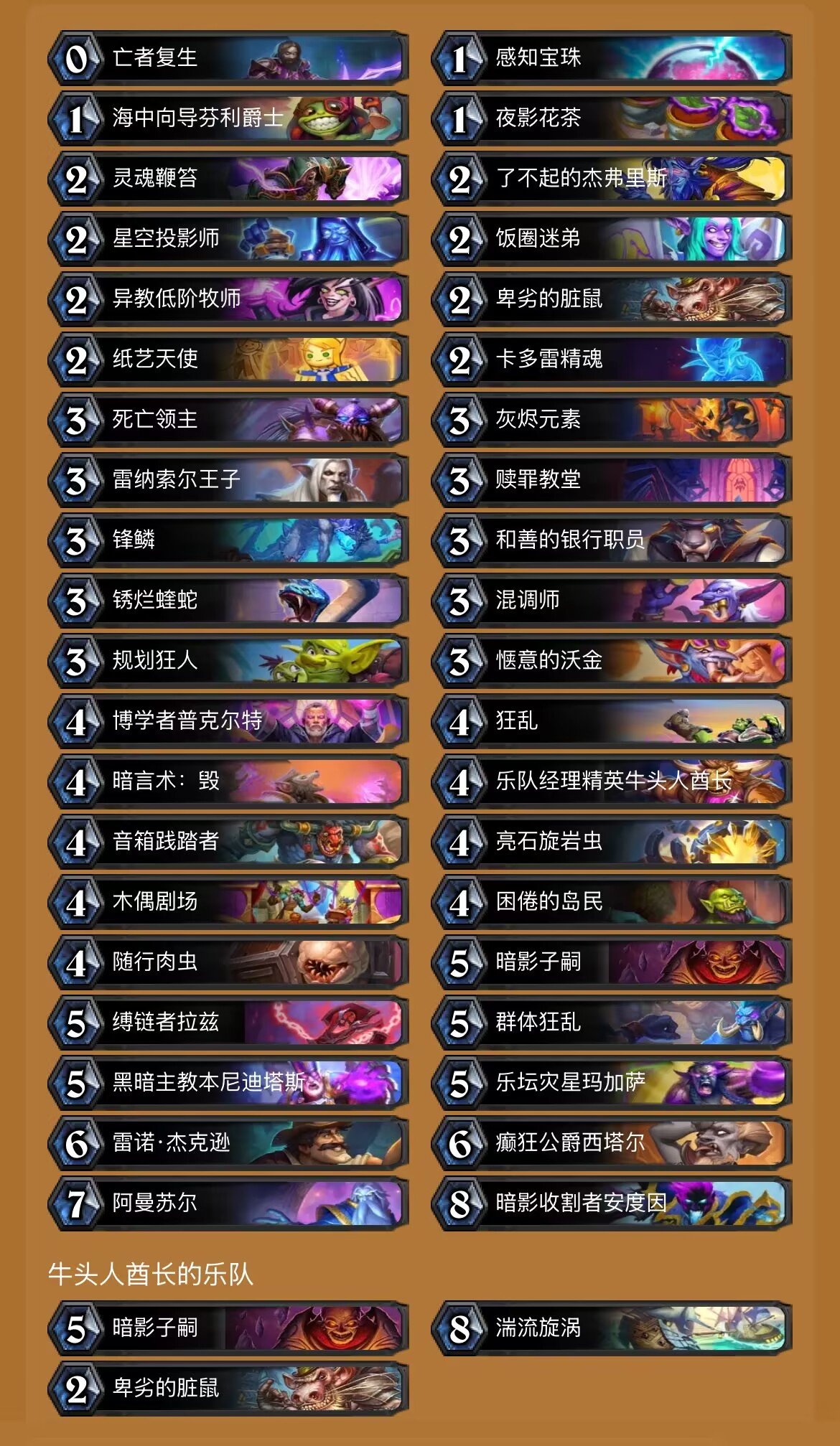 单独拿出来是因为目前狂野术士基本称霸,各种形态的术士相互制约。