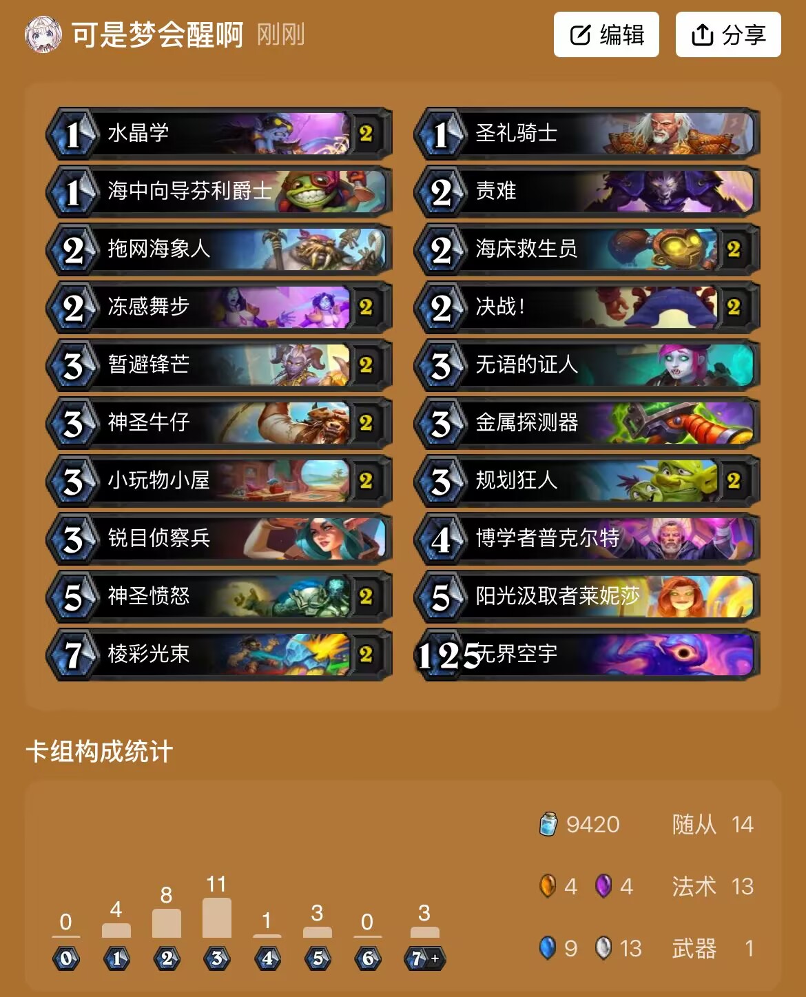 宇宙+冰法体系,能抗能打。目前玩下来胜率还是挺高的。