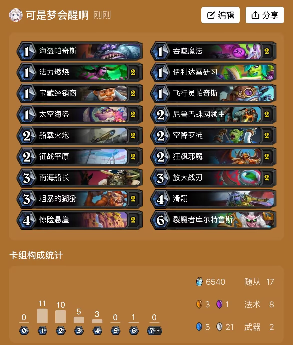 之前都在测试标准卡组,昨天花了半天上的狂野传说。