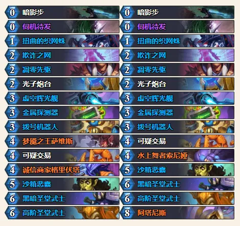 目前天梯的主流卡组基本上都会选择带上的梦魇之王萨维斯,该卡不亏身材,且能定向检索一张随从,给予黑暗之赐的额外buff效果。