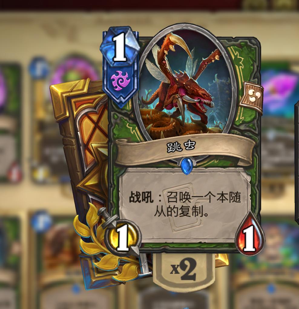 起手预留孵化池、凶恶的滑矛纳迦、跳虫,这个卡组带了13张一费卡,将近一半都是一费,要的就是前期节奏。一费拍孵化池和凶恶的滑矛纳迦是比较顺利的开局,当然手上只有跳虫,可以拍腱力金杯buff手牌,二费再拍一次腱力金杯,就可以站场两个5-3的跳虫,十分夸张,解不了我们基本就赢了。