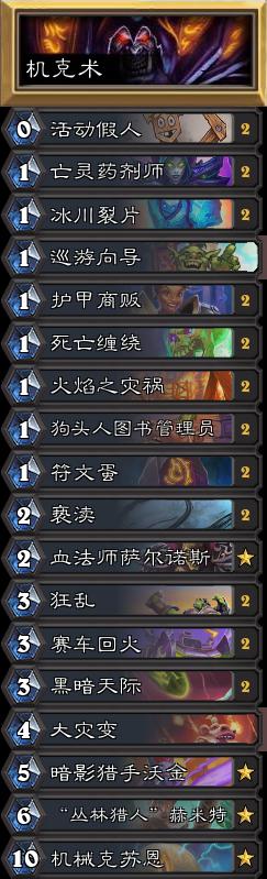 第二套则是新版本的机克术 只要手上有一张低费随从都能直接赫米特开枪,加上组件相比于以前人偶大师来说更少,解牌更多,打快攻苟得住,打慢速马速够!