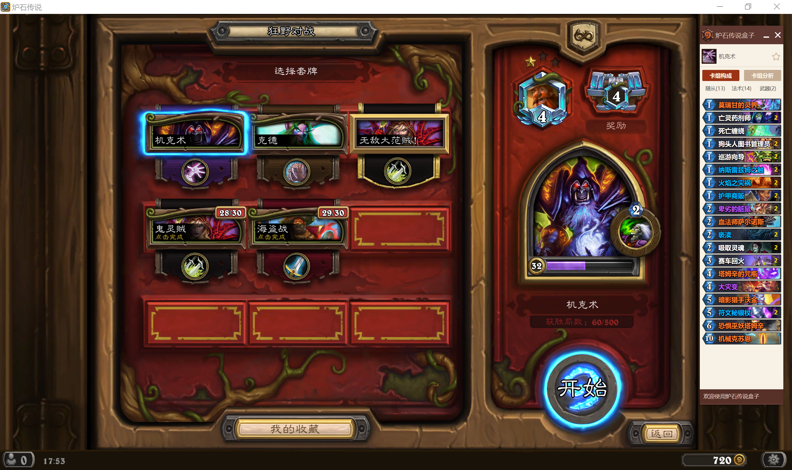 炉石传说机克术100把胜率统计及卡组心得