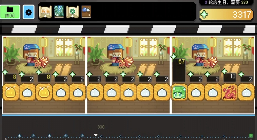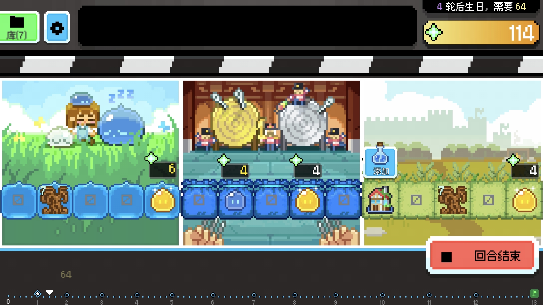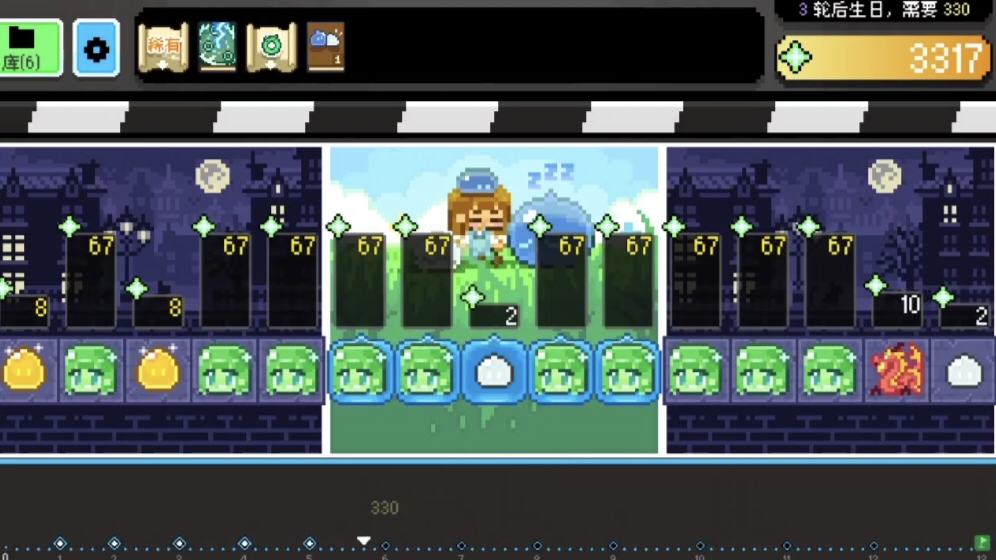 如图所示,当我们想要留史莱姆少女,或者红龙位置满意时需要消耗史莱姆少女,大退。