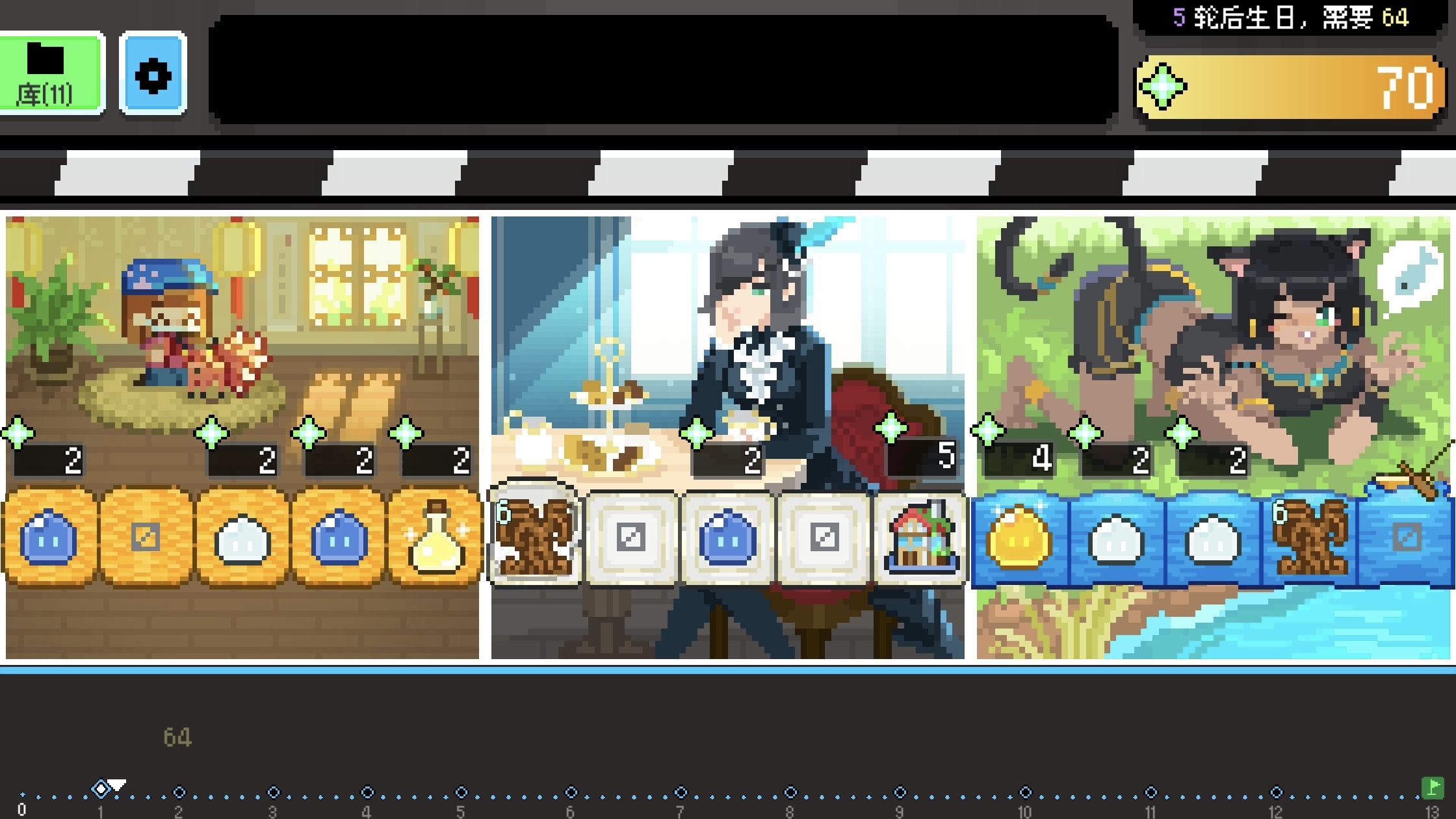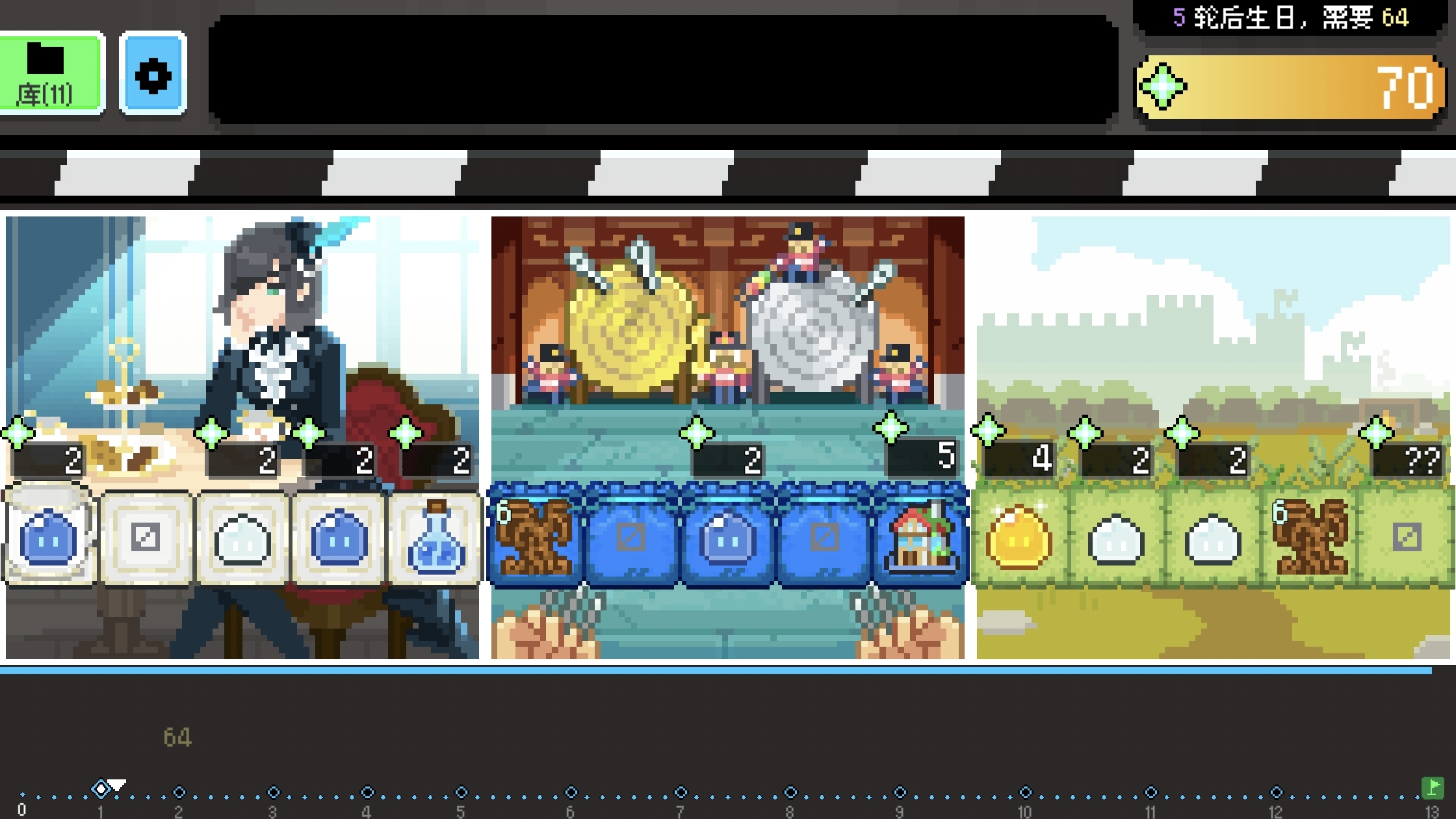回合开始后如果检测到当前[≥3],药剂工坊会随机展示一瓶药剂,我们可以消耗3购买。