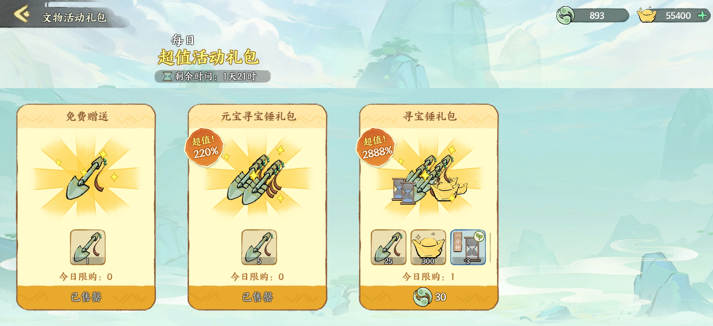 一次活动可以白嫖38抽,建议每攒两次活动后用元宝买10抽,定向一个你没有且非活动赠送的天品文物。