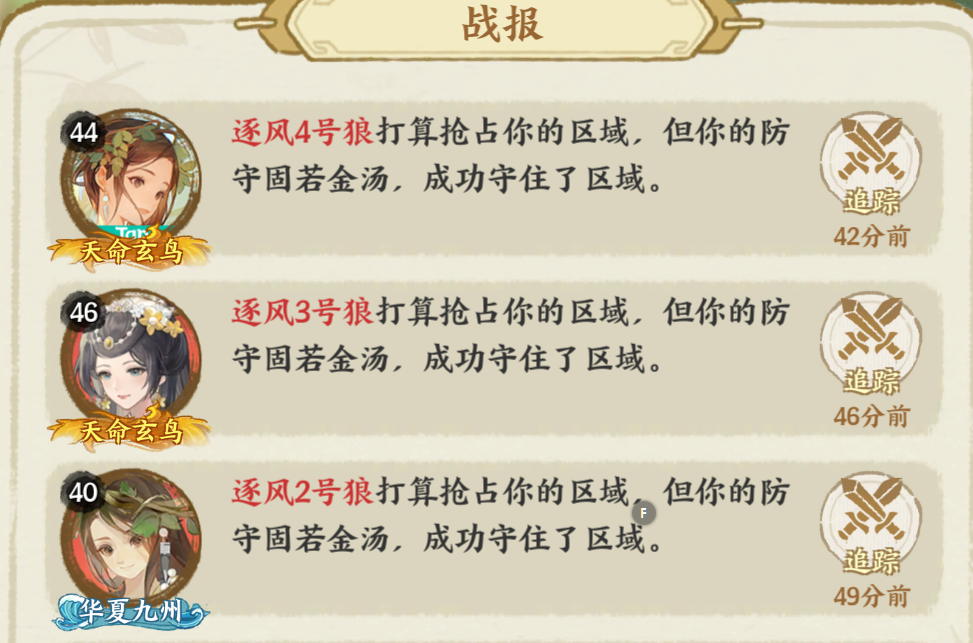 为避免战报太多,追踪的信息被系统删除,建议有时间就用小号打1次,方便大号抢夺!