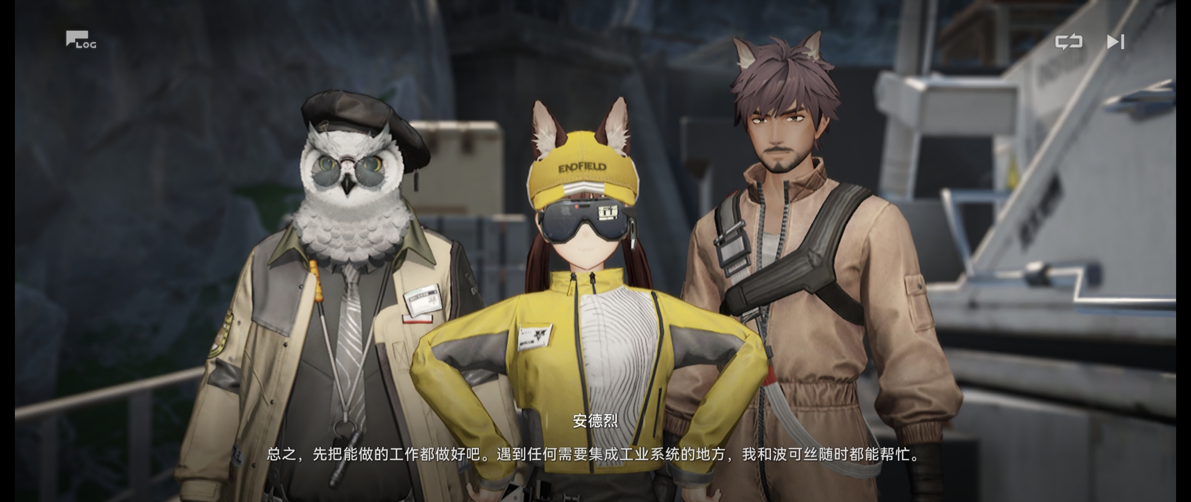 剧情表现上,初期剧情以世界观铺垫和新手教程为主,实话实说缺乏明显亮点,容易让人感到枯燥。其次,NPC建模精度仍有优化空间,部分人物形象存在较明显的违和感。其余剧情内容中规中矩,未埋下过多悬念;但作为《明日方舟》老玩家,能在剧情中发现不少令人会心一笑的彩蛋。不过《终末地》的剧情演出并无耳目一新之处,老二次元手游玩家可能会出现审美疲劳。值得称赞的是,《终末地》自机角色建模精致度处于市场第一梯队,与《鸣潮》水平相当,部分细节表现甚至更优。以开篇雨水场景为例,管理员面具上的雨水光影效果及滑动动态十分出色,堪称点睛之笔。此外,角色对话并非呆板的站立互动,而是加入了丰富的手势、眼神及表情动作,这一设计大幅提升了剧情代入感,是明显的加分项。