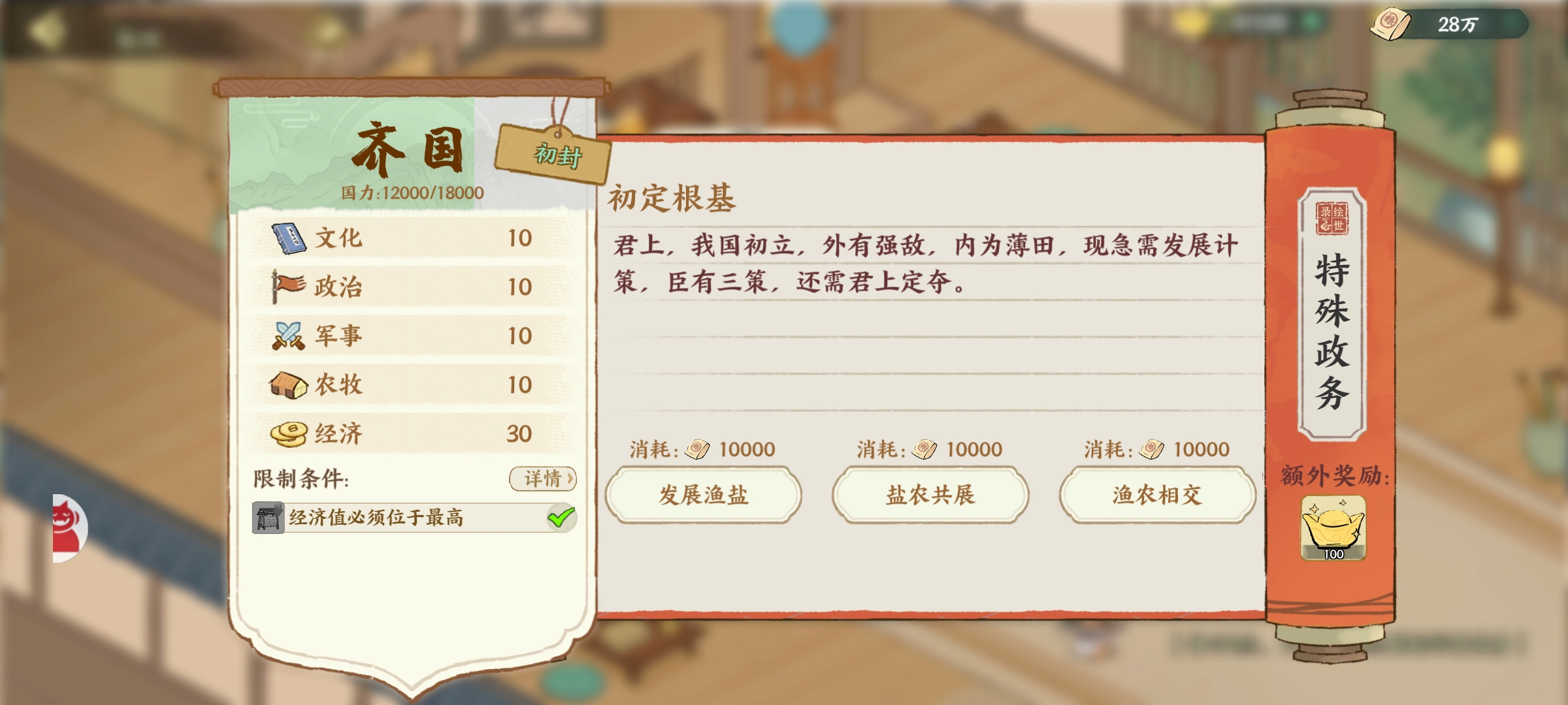 华夏绘世录寡人政务繁多,管仲你在哪呢?【齐国政务选择】