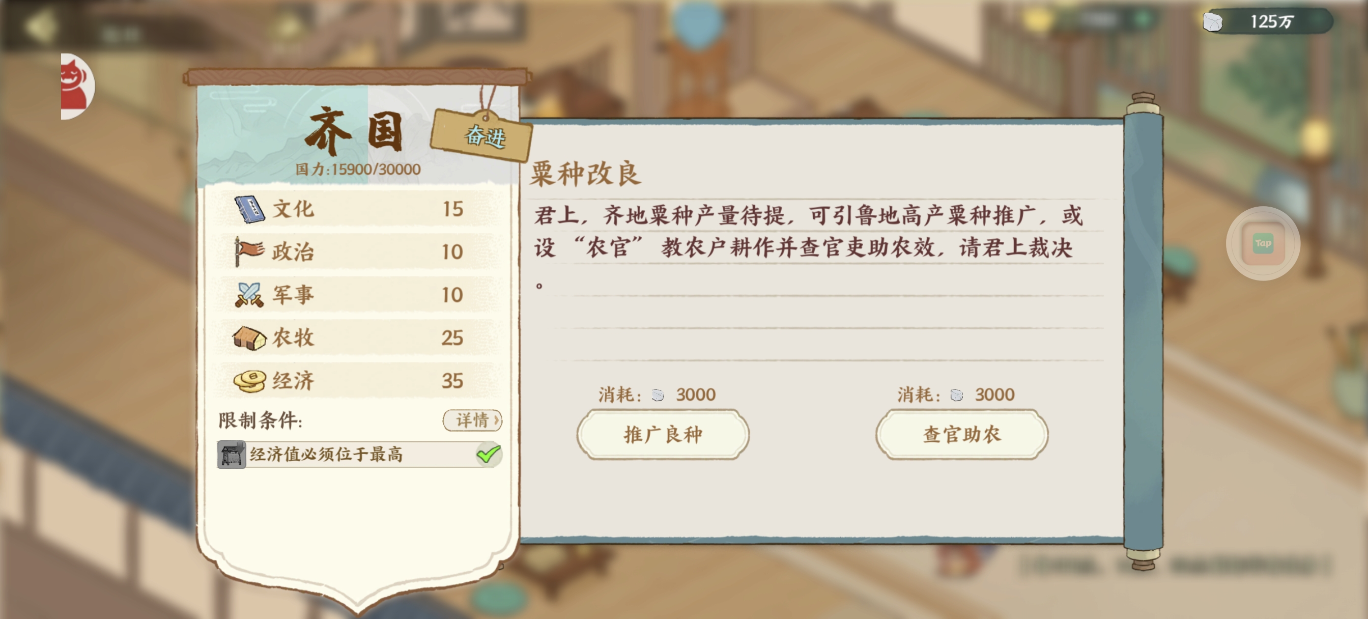 华夏绘世录寡人政务繁多,管仲你在哪呢?【齐国政务选择】如下: