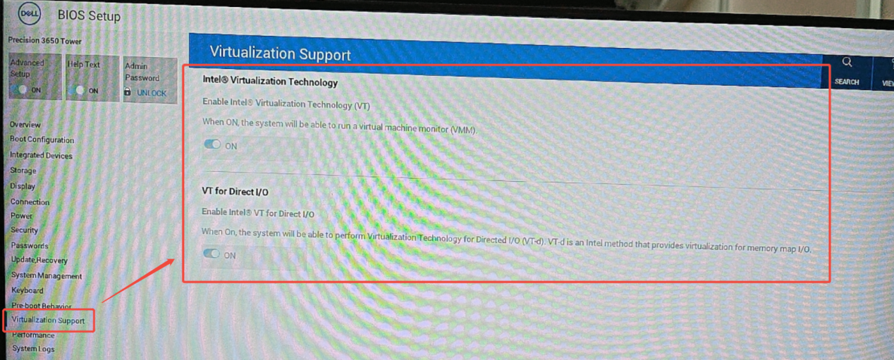 戴尔:开机界面连续短按“F2”进入bios页面,选择Bl0SSetup、Vitualization Support