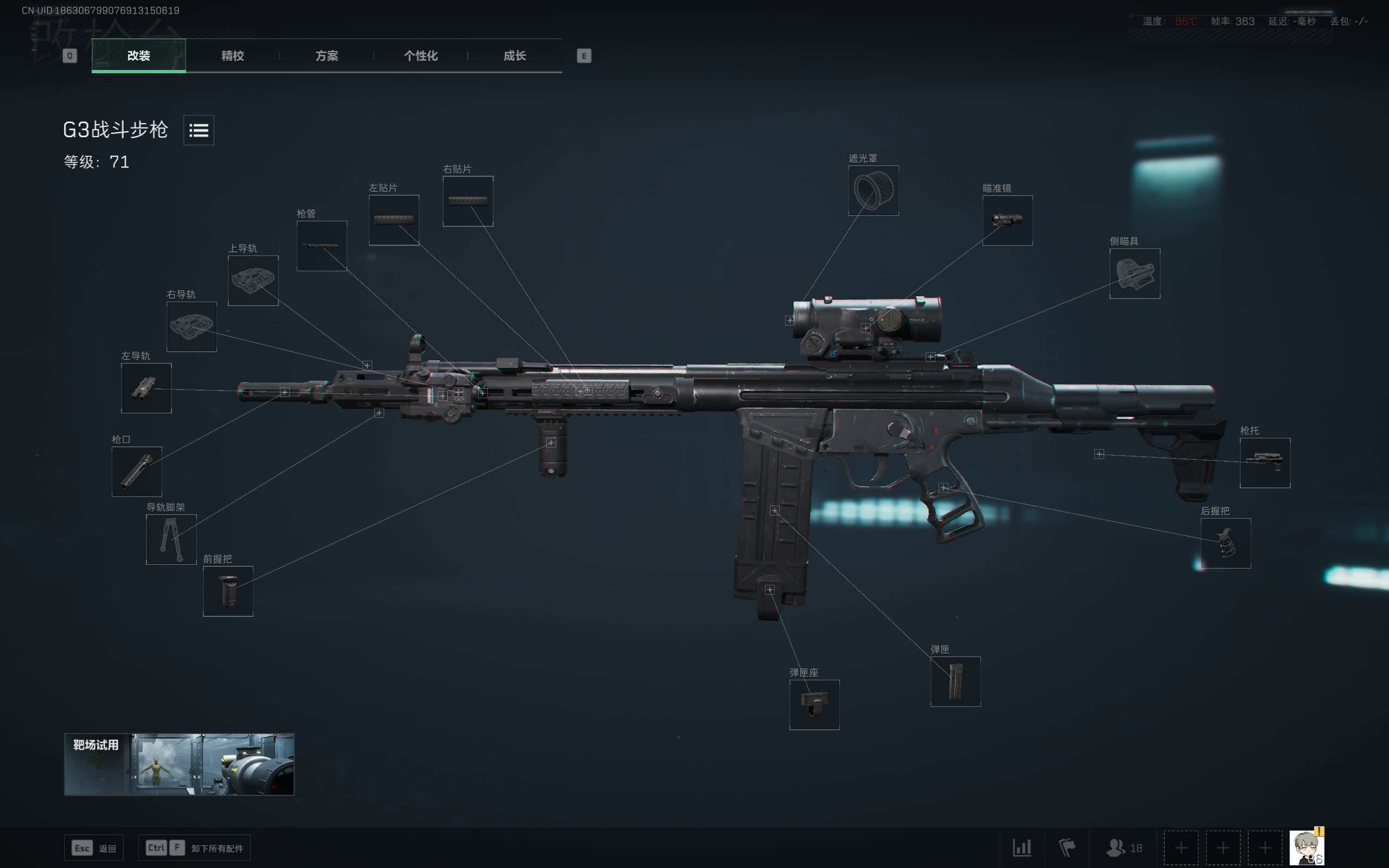 三角洲行动【全面战场】改装版G3战斗步枪强势改装,中距离架枪超好压!如下: