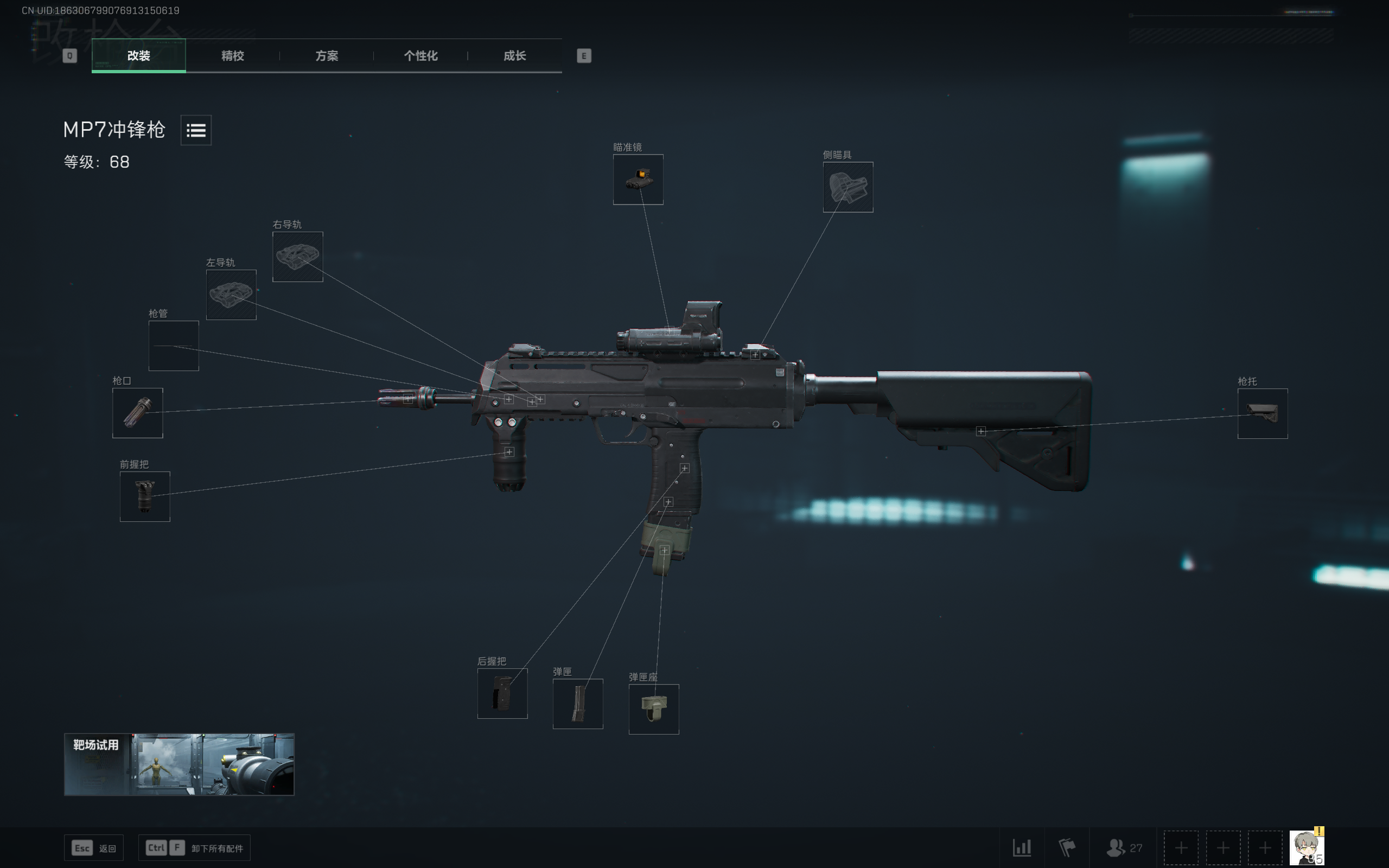 手感与总结:这把 改装的MP7 冲锋枪操控较为流畅,后坐力相对容易控制,射击时抖动感不强,给人一种较为稳定的手感。其射速较快,使得在近距离作战时,能迅速打出弹药,火力衔接感较好,整体手感偏向于灵活且具有一定的火力持续性。