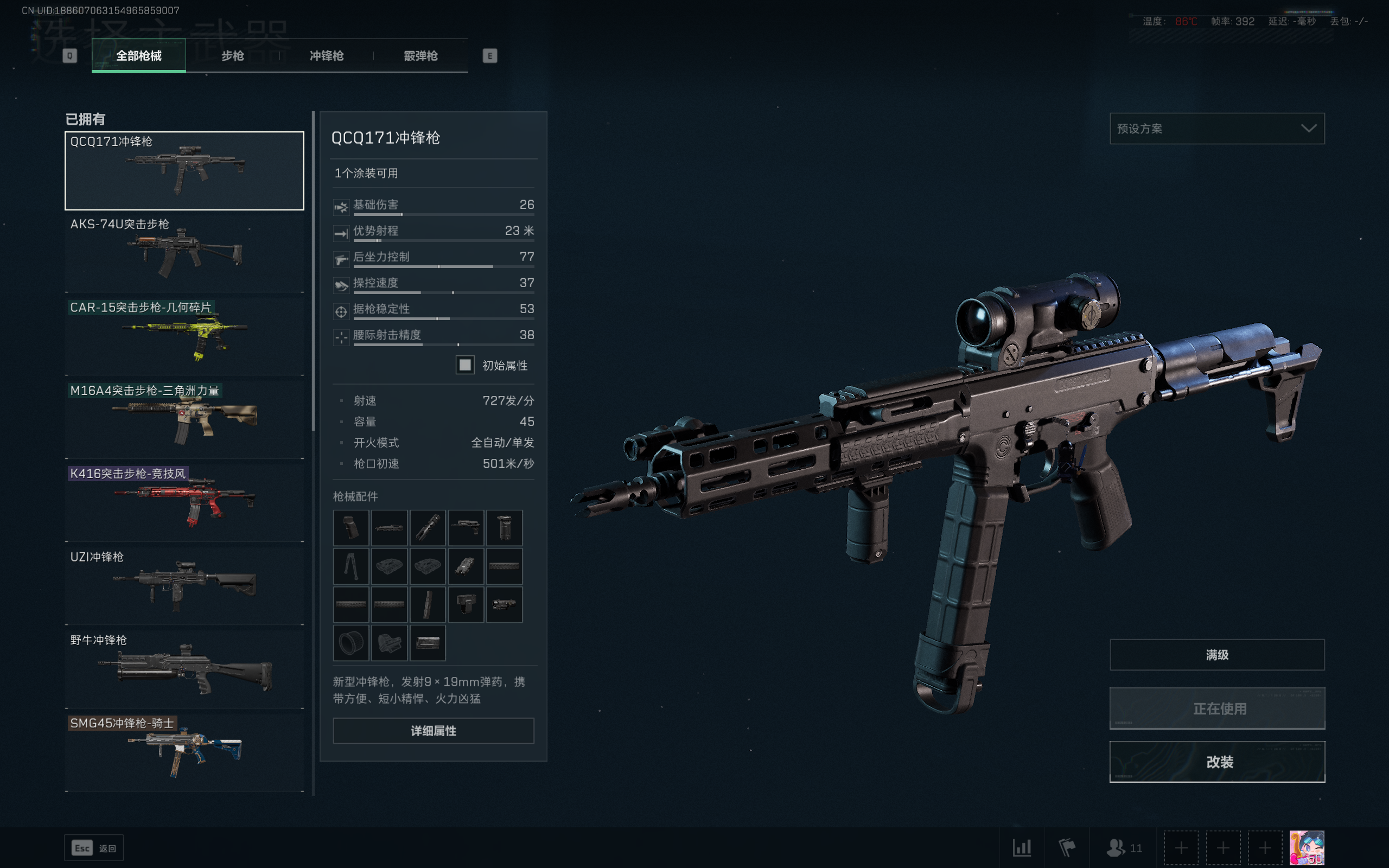 从数据种可以得出:QCQ171冲锋枪是一把综合性能较为均衡的枪械。它在近距离战斗中具备较强的压制力和持续输出能力,后坐力控制良好使其对不同水平玩家都有一定友好度。不过在远距离作战能力上有明显短板。适合喜欢近战冲锋、注重火力持续性和压制效果的玩家使用,在团队作战中可承担突进、近战火力支援等角色,是一把在特定作战场景(近战及部分中距离)能发挥出色的武器。
