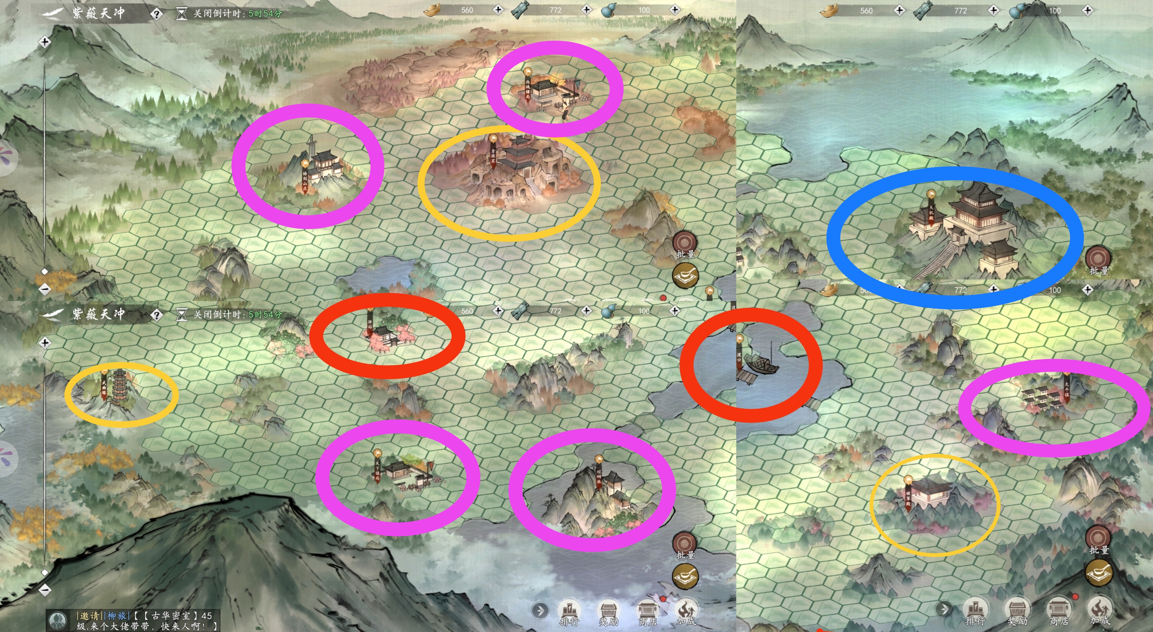 蓝色:天机,最终boos,推荐buff拉满再打,除非有氪佬存在,可以平推,(因为是测试版本,可能难度有点小,活动开启第一天都可以平推到天机,公测或许会有改动),获得大量积分