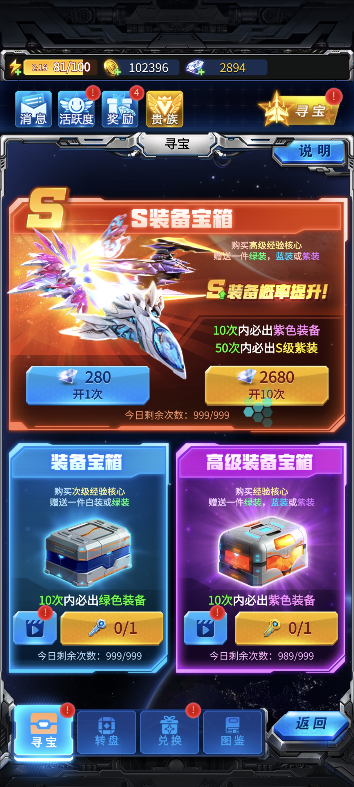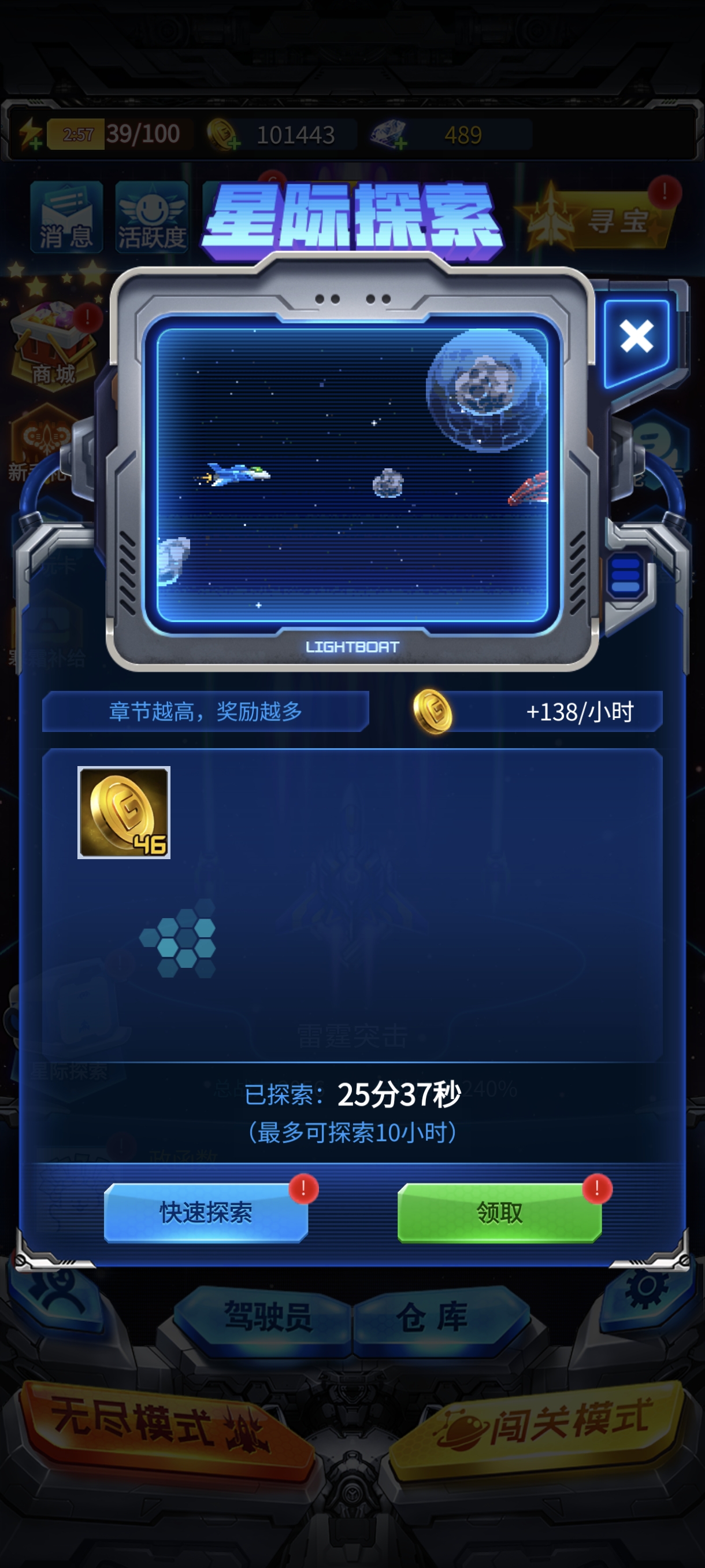 而金币的获取则是通过星际探索,玩家不要觉得前期的金币一文不值,还是能扫荡完就扫荡完。毕竟升级装备还是很贵的。