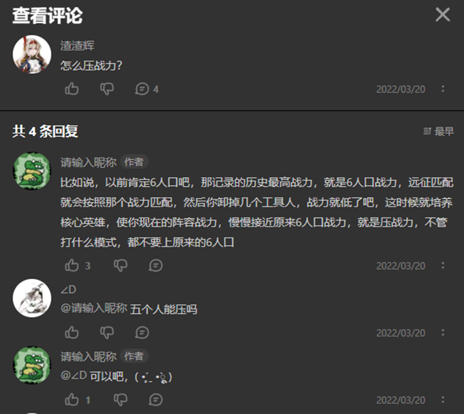 在这一篇中,陆少在评论区中提出一点,“远征是按照自身历史最高战力匹配,脱装备没有用”(压战力无用)。
