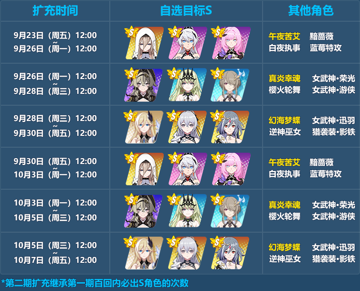 崩坏3【抽卡规划】周年庆轮替补给如下: