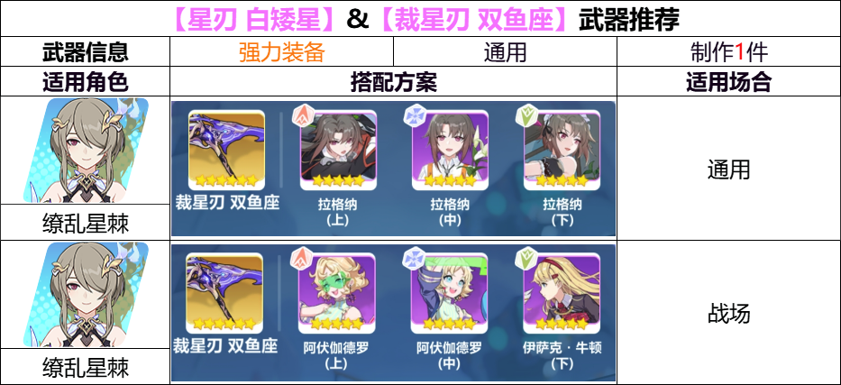 [裁星刃 双鱼座]为'缭乱星棘'的输出毕业武器,提供了高额的加成和主动伤害。