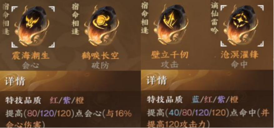 首先特质的选择大特质为:龙泉鸣小特质选择为:刀意/催魂蛊/烈焰枪/剑心/向天歌/青龙借剑,