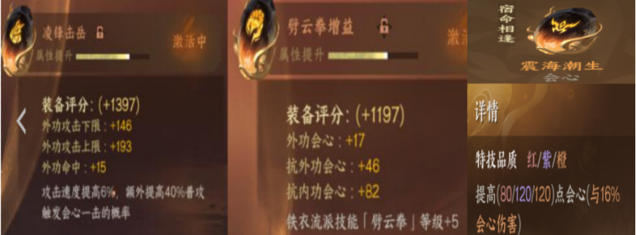 首先正常平替内功,根据自己账号替换,就可以了首先自己打造这里不是最优解但是有用的,其他的不是不想要而是没有。其实武器打造凌峰击岳,项链打造劈云拳,鞋子打造震海潮生,其实就可以了,