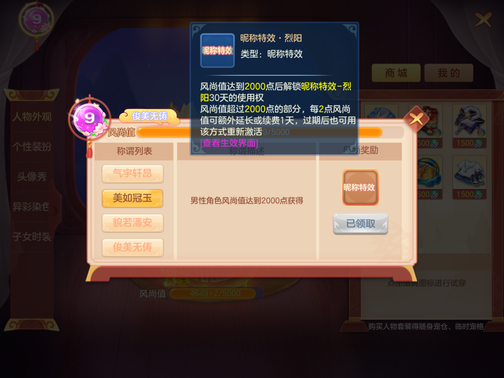 5、风尚值:限“一马当先”及后续服务器生效,新增了风尚值系统,可在其中获取昵称特效等奖励。