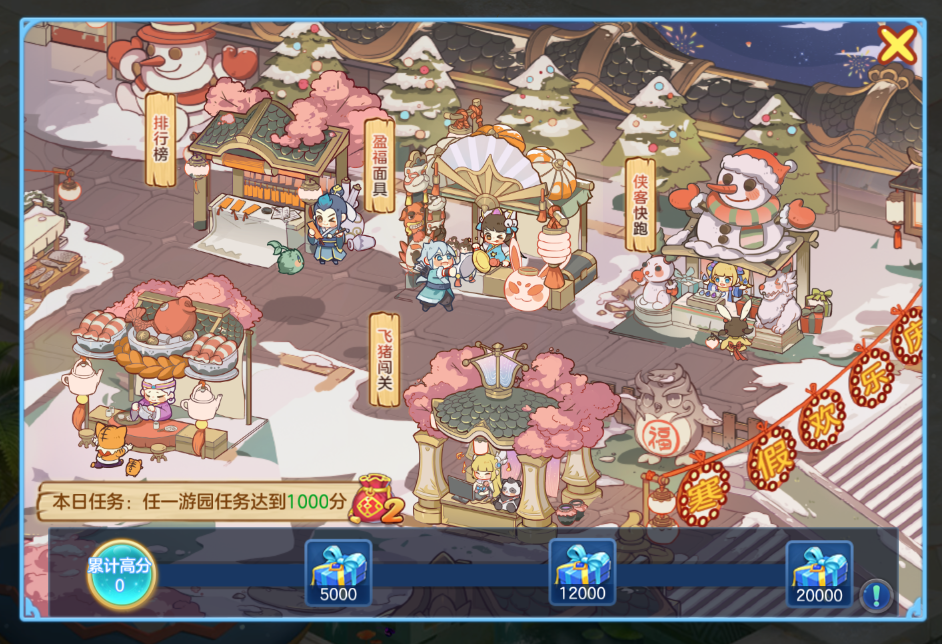 2月2日9:00至2月18日24:00,开启寒假游园活动,每日进行游园小游戏获得积分,累积积分赢取游园礼物。