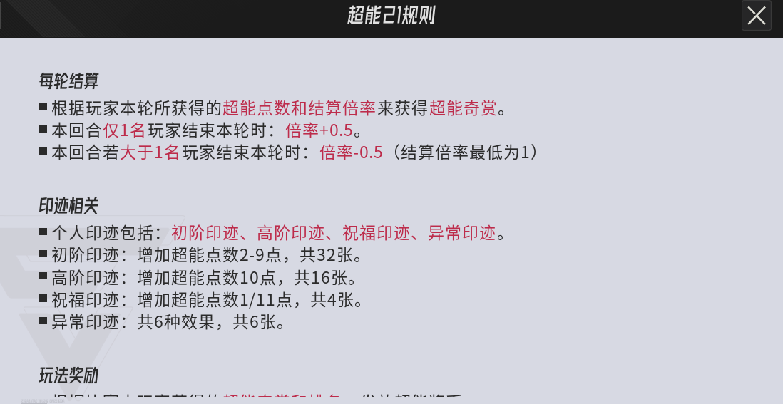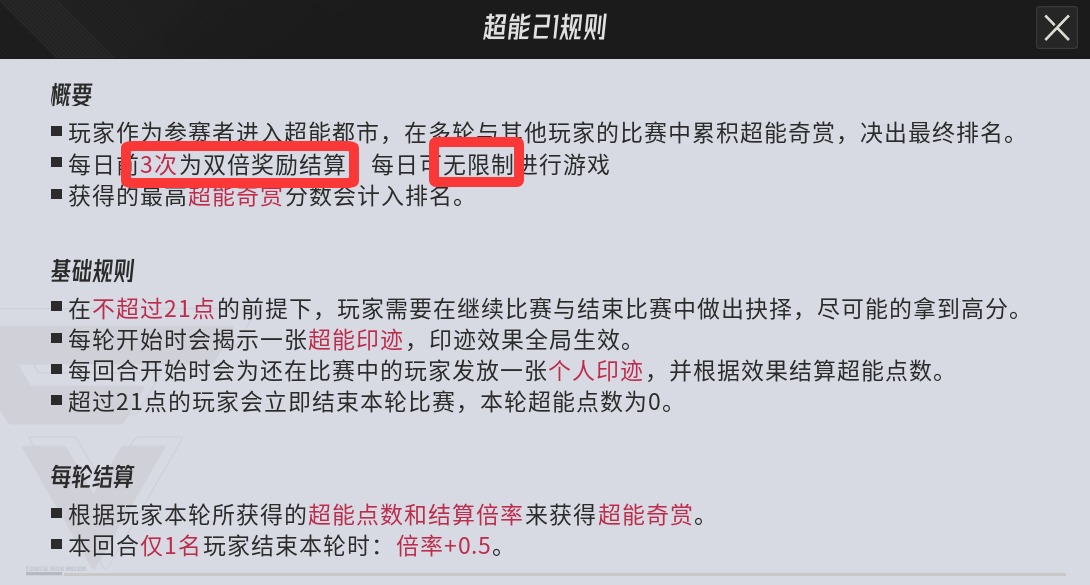 3:每轮回根据玩家本轮获得的超能点数和结算的倍率来计算最终获得的【超能奖币】