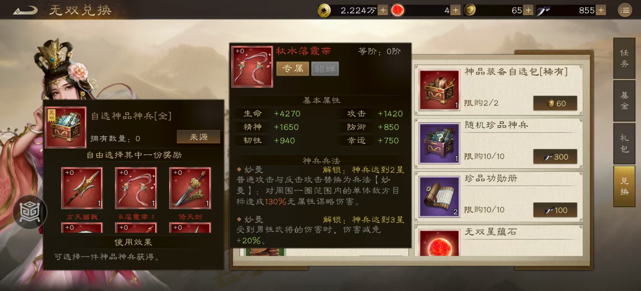 神兵对貂蝉的提升:PVE而言,较低。PVP而言,中等。综合评价中等偏下。