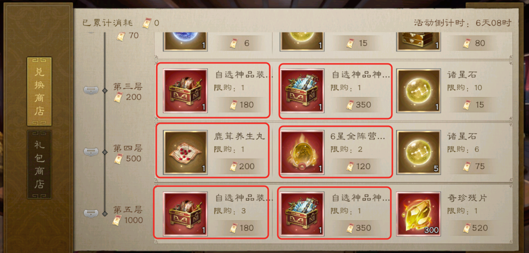基于【零氪/低氪】玩家的策略,中氪玩家只需确保每次活动能积累500券即可兑换神兵,从而实现每次活动提升一个神兵的目标。