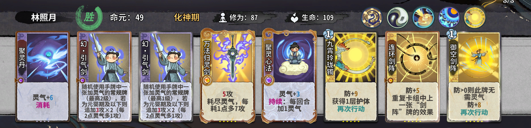 如果在筑基和元婴拿到先天灵气,可以直接三动满级聚灵丹,满级引气剑,二级万法就够斩杀了。(元婴基本上是连胜加上龙鳞,活到决赛圈这些牌是能够凑齐的)