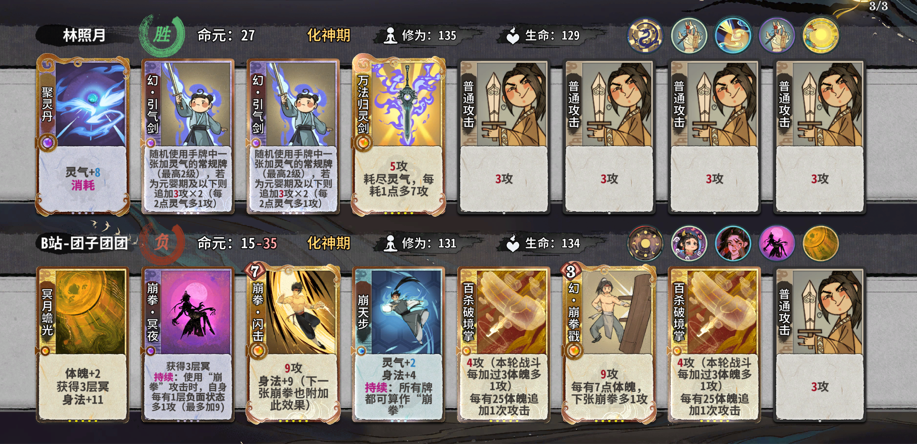 第二轮叶冥冥是偶数轮+3修为,所以他马上变成三动把我秒了