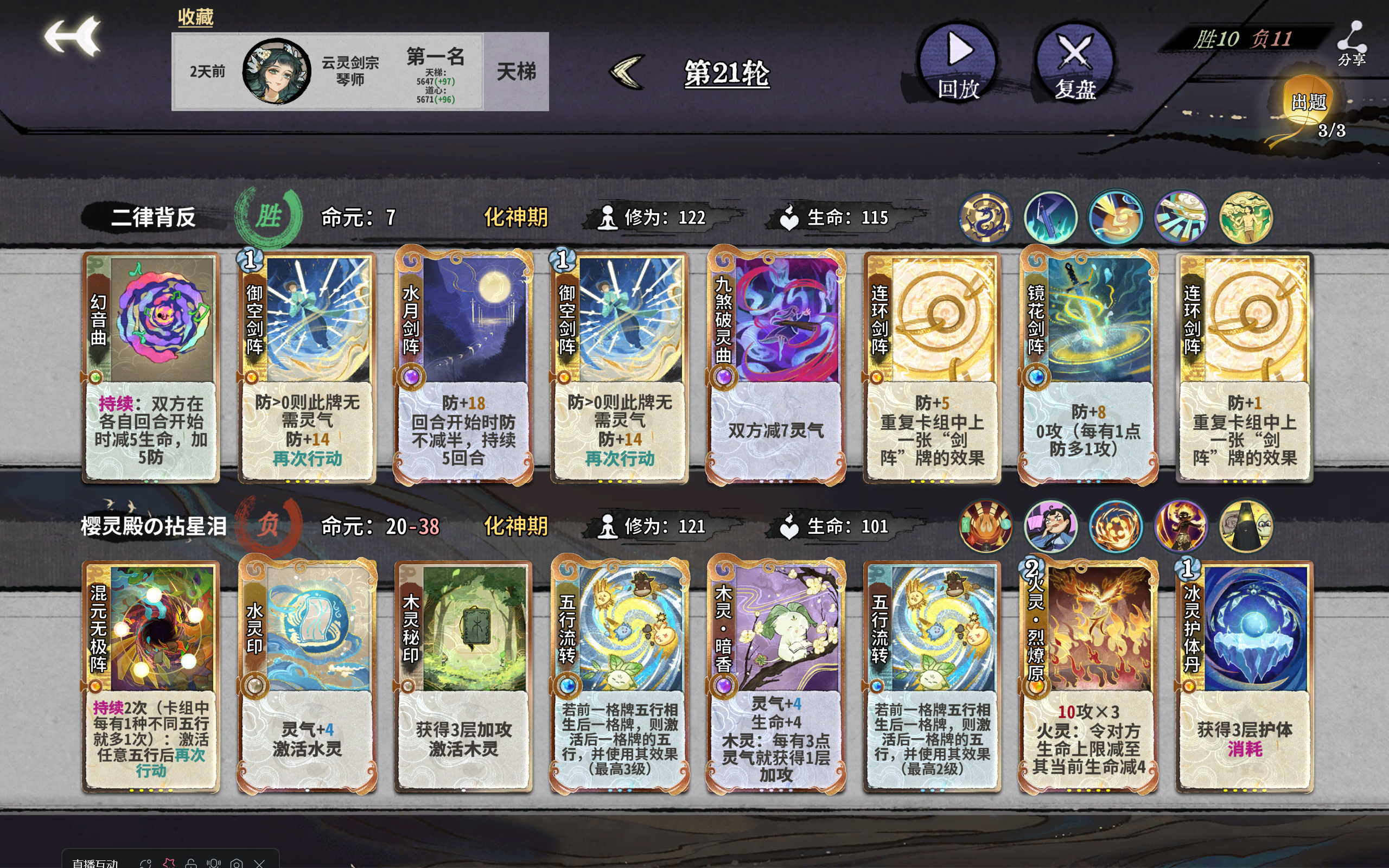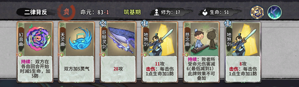 元婴:剑阵传承>休养生息=副职传承/门派传承=顿悟>2修为仙命=雷劫>2灵气=换牌次数