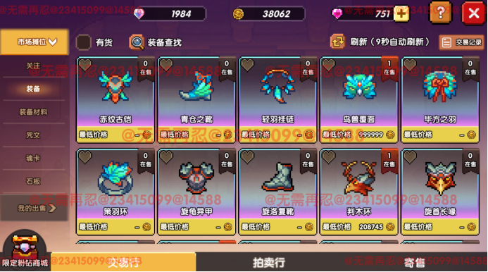 每种待拍道具数量30(可能会变),玩家在拍卖的半小时内可以自行加价,最终价高者得~