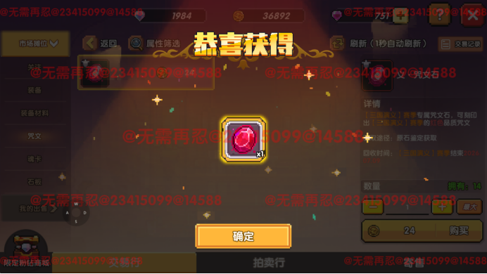 市场会默认将价格低的商品排在前面(左上为前),对于材料类商品,优先选择价格低的进行购买即可,而对于唯一类别商品,如咒文石,因为咒文石属性不同,不一定价格越低就越好,可以点开咒文查看其详细属性。