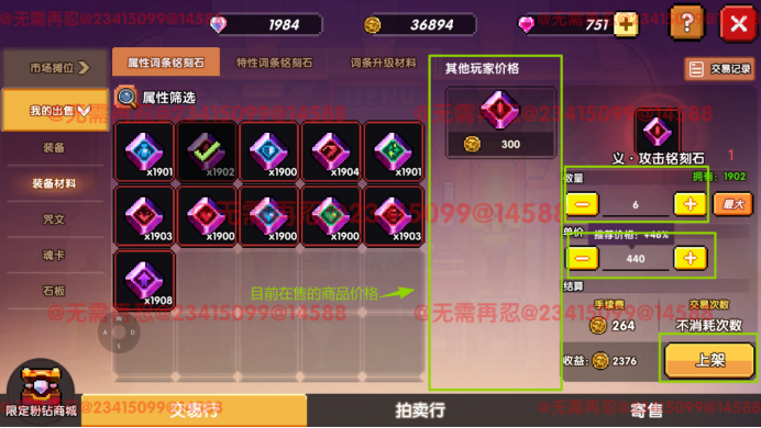 ,不要设置太低(恶意压价)或是太高(偏离市场);(上图,中偏右部分的其他玩家价格可供参考)
