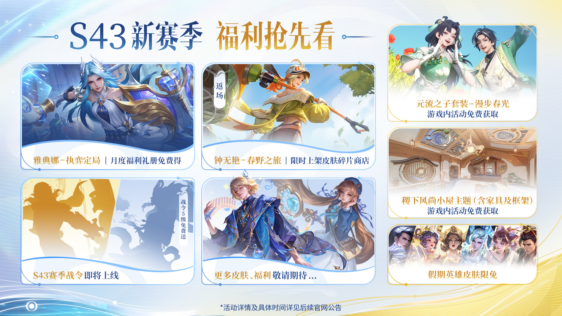 【更新时间】我们将于2026年4月1日0:00-5:00进行更新维护(实际更新时间可能随实际发布情况提前或延后),更新维护期间匹配与无限乱斗模式保持开放。完成更新后即可开启S43新赛季。