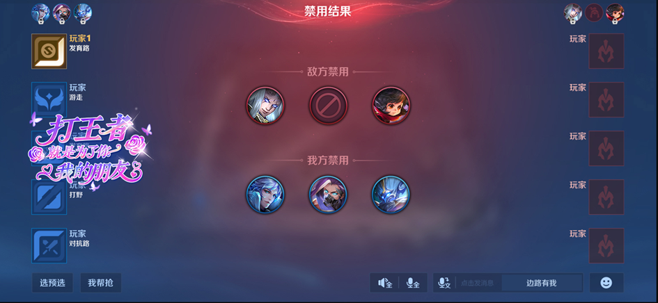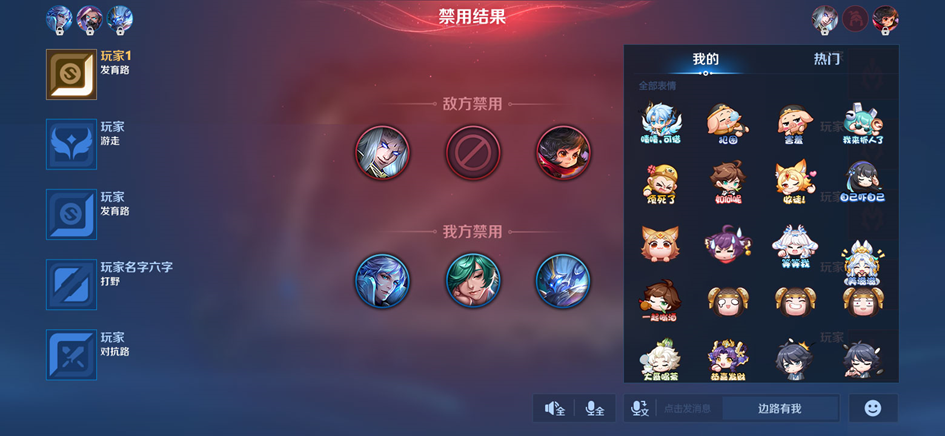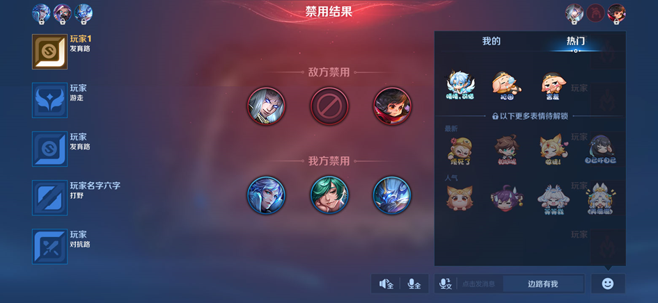 4. 新增开局禁用环节,双方队伍投票,票数最高的3位英雄本局将被禁止选取