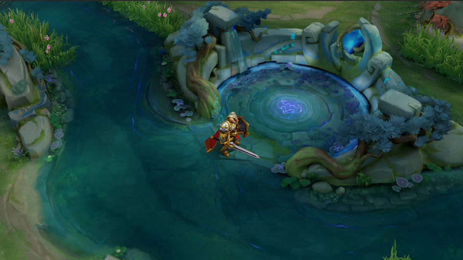 在红方视角下,对抗路和发育路方向会调换,主宰和暴君的位置也会调换,现在增加一些地面指示物,来提升对应信息传达率和辨识度对抗路和发育路新增出门地面指示物