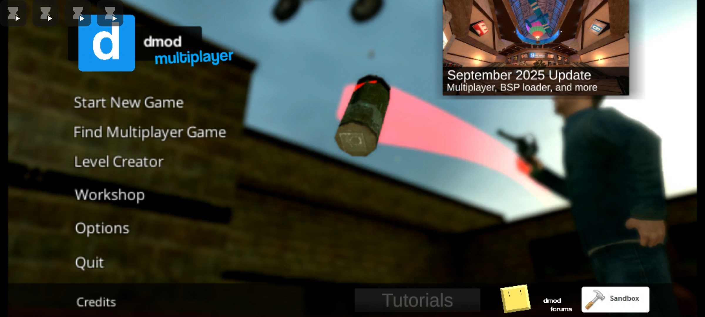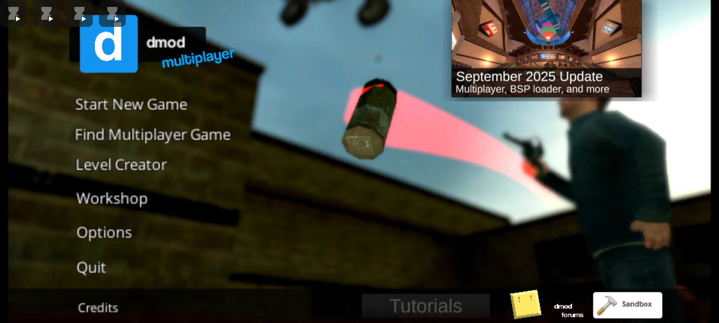 dmod1.2 这个游戏简直是脱胎换骨 本次更新(只说部分) 汽车和公交车改成了dmod配色 地图增加并整改 去掉一些地图 增加一个工作室另外一个dmod的地图 控制枪可改颜色 删除一些实体,增加一些 联机模式(可选区 但没有CN)